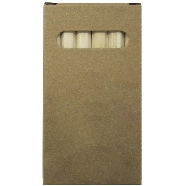 Zestaw kredek drewnianych mini, który zawiera 6 sztuk, zapakowany w tekturowym opakowaniu.
