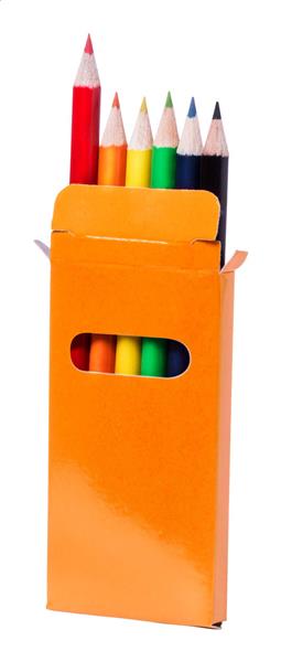 Drewniane, kolorowe kredki (6 szt) w kolorowym papierowym pudełku. Description: Drewniane, kolorowe kredki (6 szt) w kolorowym papierowym pudełku. Primary Color: pomarańcz Material 1: Drewno Rodzaj długopisy: Ołówek Material 2: Papier Rozmiar: 50×93×8 mm Stopień ołówka: HB