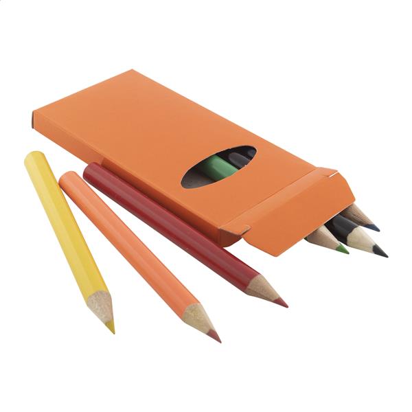 Drewniane, kolorowe kredki (6 szt) w kolorowym papierowym pudełku.
