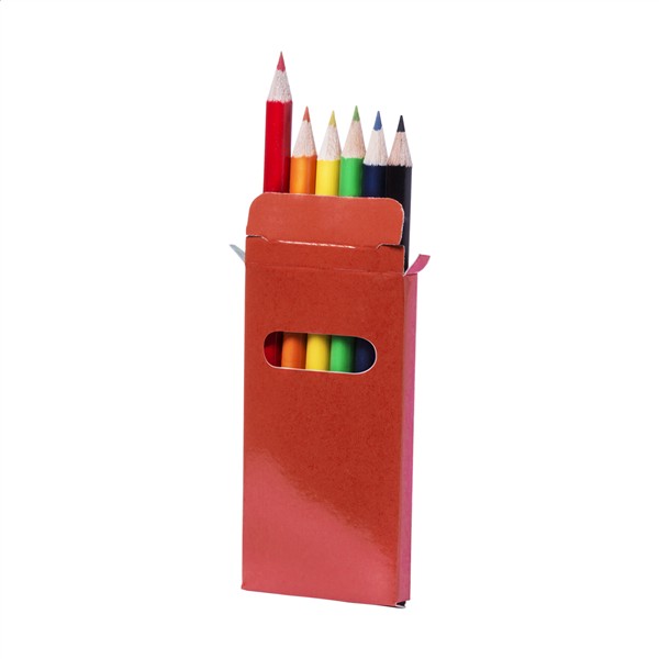 Drewniane, kolorowe kredki (6 szt) w kolorowym papierowym pudełku.