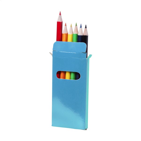 Drewniane, kolorowe kredki (6 szt) w kolorowym papierowym pudełku.