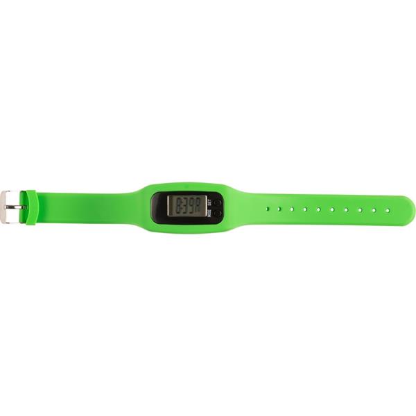 Opaska na rękę z krokomierzem, liczy ilość kroków (do 99.999), spalone kalorie oraz przebyty dystans