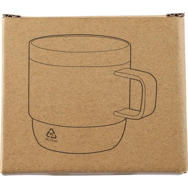 Kubek 180 ml, z uchwytem ułatwiającym picie, ikona recyklingowej stali nierdzewnej na produkcie, zapakowany pojedynczo w brązowe kartonowe pudełko, produkt wykonany z recyklingowej stali nierdzewnej (wewnątrz 304 / na zewnątrz 201) z powłoką ceramiczną wewnątrz