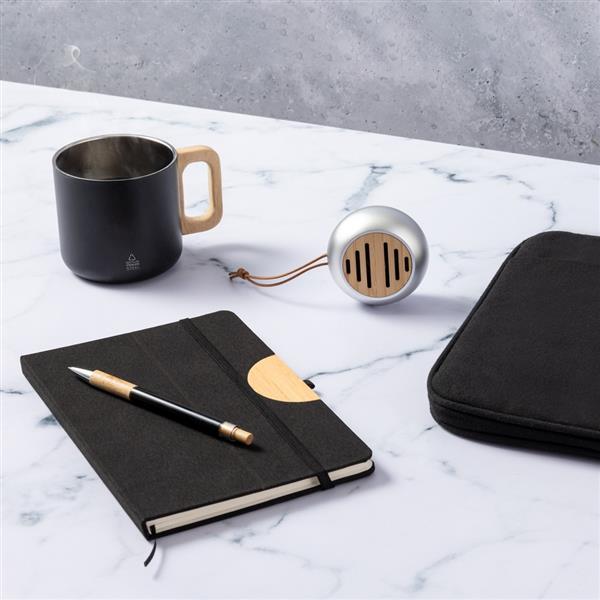 Kubek 400 ml wykonany ze stali nierdzewnej z recyklingu, podwójne ścianki, drewniany uchwyt