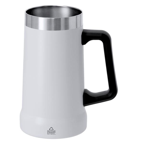 Kubek 700 ml, podwójne ścianki ze stali nierdzewnej z próżnią między ściankami dzięki czemu długo utrzymuje temperaturę nie oddając jej na zewnątrz, produkt wykonany ze stali nierdzewnej z recyklingu