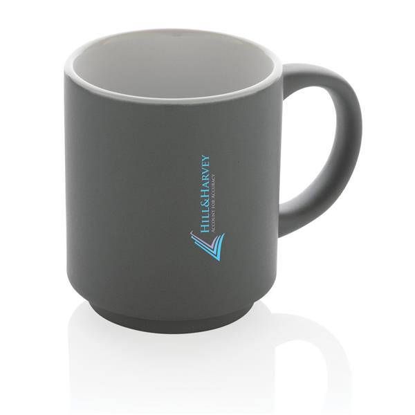 Kubek ceramiczny 180 ml, specjalna konstrukcja umożliwia przechowywanie kubków jeden na drugim co pozwala na oszczędność miejsca, można myć w zmywarce, w pudełku z papieru kraftowego, ślad węglowy produktu: 0,96 kg CO2