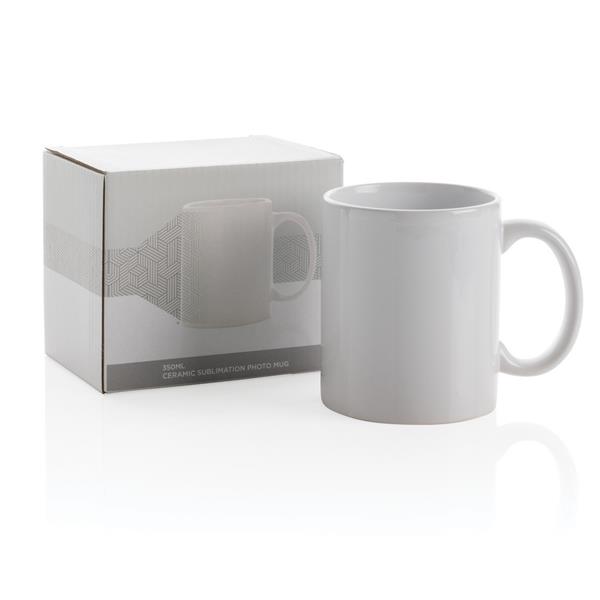 Kubek ceramiczny 350 ml pod sublimację, można myć w zmywarce, w pudełku podarunkowym