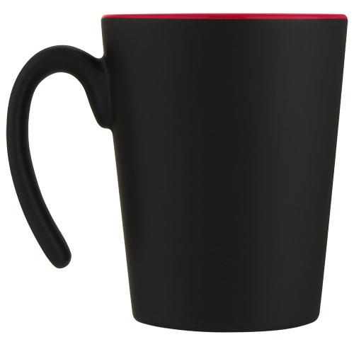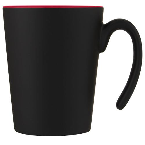 Kubek ceramiczny Oli o pojemności 360 ml z uchwytemCeramiczny kubek o nowoczesnym wyglądzie i matowym wykończeniu z błyszczącym wnętrzem z efektem color-pop. Pojemność 360 ml. Wszystkie metody nadruku nadają się do mycia w zmywarce. Zapakowany w kartonowe pudełko upominkowe wykonane z materiałów pochodzących z recyklingu.Wysokość: 9,8 cm Materiał: Stoneware Kolor: Czerwony