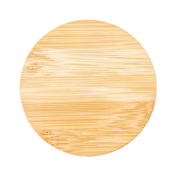 Kubek ceramiczny o pojemności 400 ml o matowej powierzchni. Bambusowa przykrywka i podstawa wykonana z naturalnego korka.