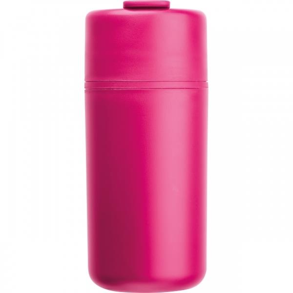 Kubek do picia z podwójnymi ściankami wykonany z polipropylenu o pojemności 500 ml z przesuwną pokrywką do picia. Nadaje się do napojów gazowanych. T4 (tampodruk): 4 x 3,5 S2 (sitodruk): 20 x 8