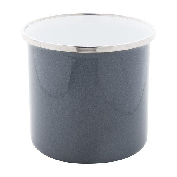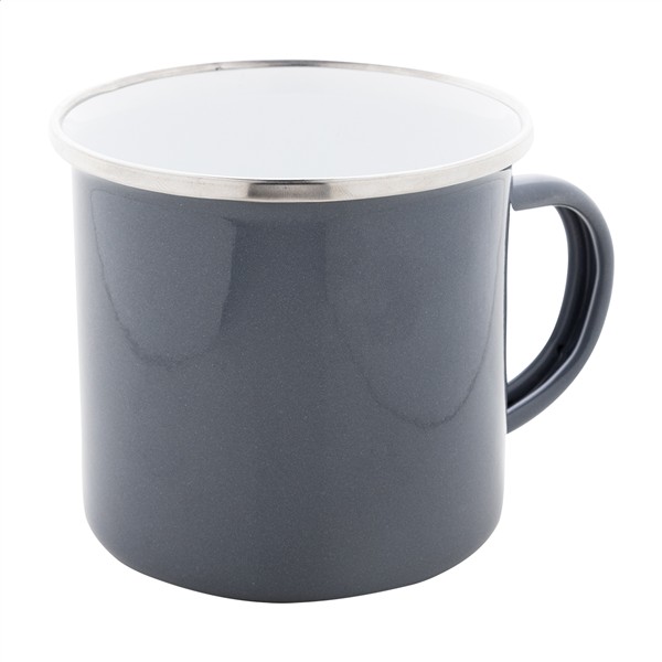 Kubek metalowy emaliowany w stylu vintage z obręczą ze stali nierdzewnej, pojemność 300 ml.