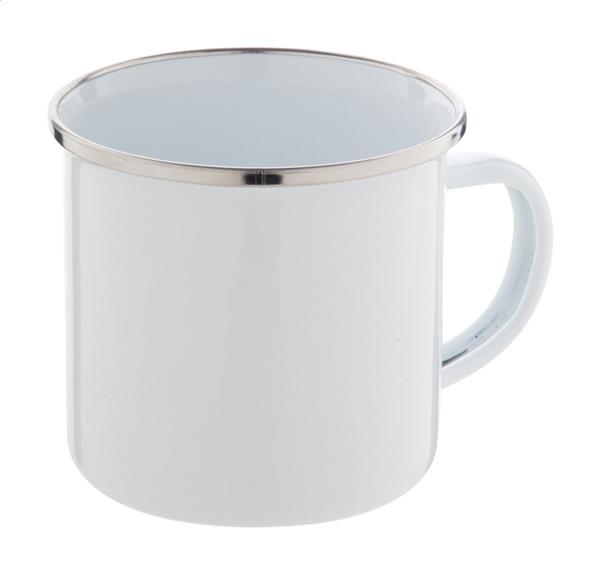 Kubek metalowy emaliowany w stylu vintage z obręczą ze stali nierdzewnej, pojemność 300 ml.
