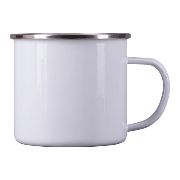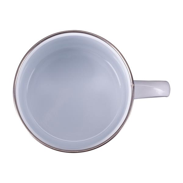 Kubek emaliowany z uchem w stylu vintage. Wykonany ze stali węglowej, rant ze stali nierdzewnej. Pojemność 500 ml.