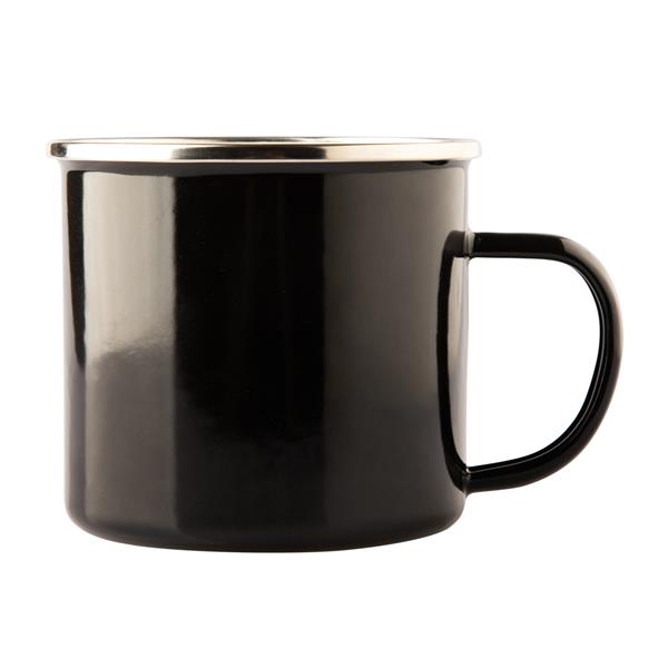 Kubek emaliowany z uchem w stylu vintage. Wykonany ze stali węglowej, rant ze stali nierdzewnej. Pojemność 500 ml.