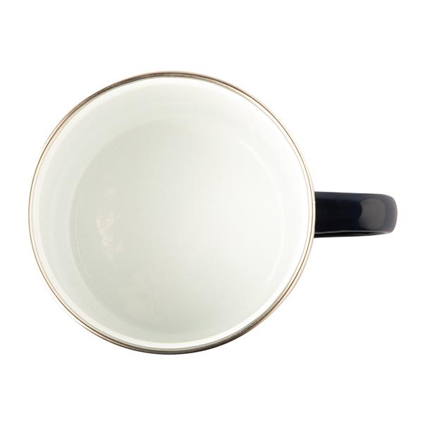 Kubek emaliowany z uchem w stylu vintage. Wykonany ze stali węglowej, rant ze stali nierdzewnej. Pojemność 500 ml.