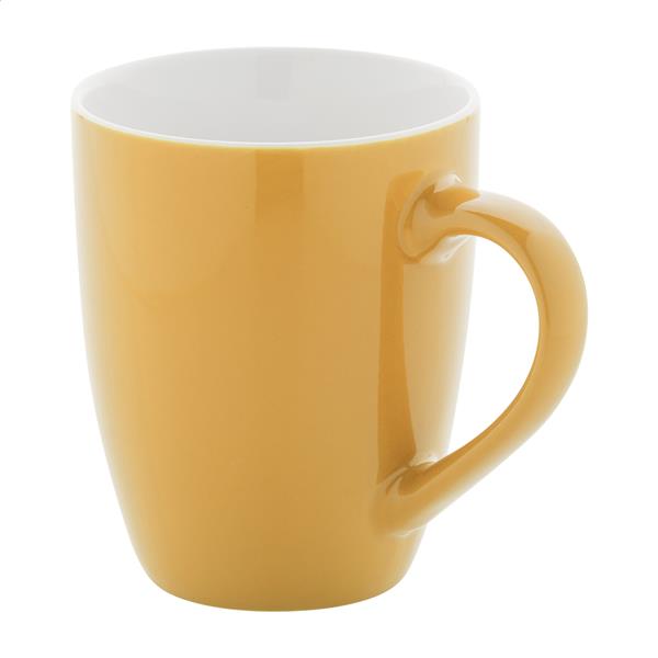Wysokiej jakości kolorowy kubek ceramiczny z białym wnętrzem, 340 ml. W kartoniku.