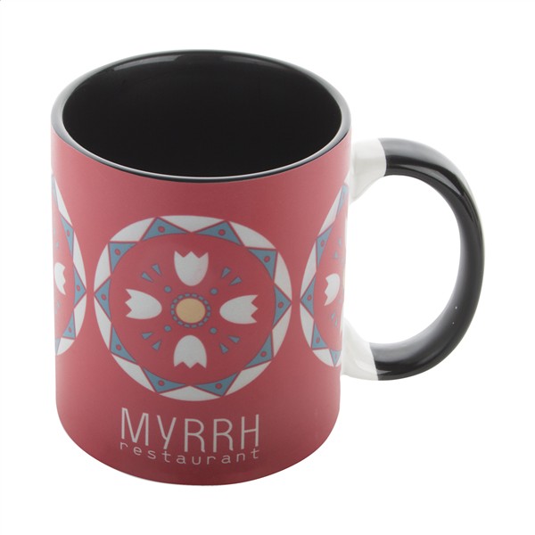 Kubek ceramiczny pod sublimację z kolorowym środkiem oraz uchwytem w tym samym kolorze. Produkt dostarczany w ozdobnym opakowaniu. Pojemność: 350 ml.