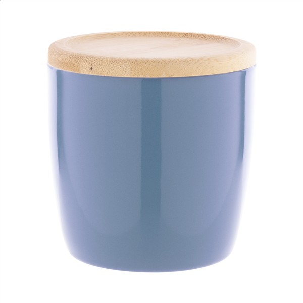 Wysokiej jakości kolorowy kubek ceramiczny z białym wnętrzem i bambusową podstawką, 370 ml. W kartoniku.