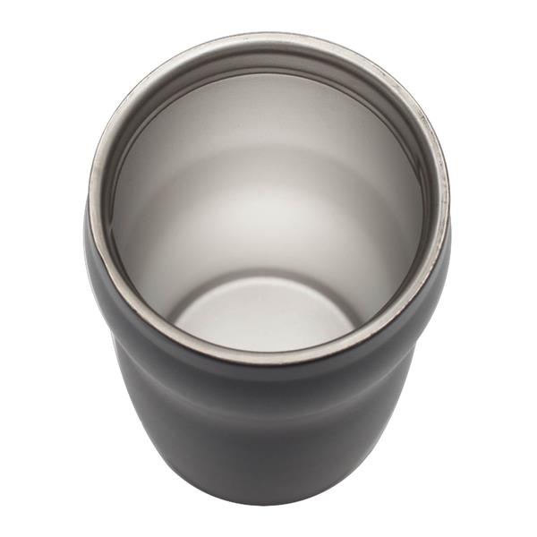 Kubek-termos 270 ml. Dwie ścianki ze stali nierdzewnej, wewnątrz stal 18/8 o podwyższonej jakości. Próżnia pomiędzy dwiema ściankami zapewnia bardzo dobre właściwości termo-izolacyjne. Pokrywkę można rozkręcić, co pozwala na staranne umycie kubka. Podstawa kubka z wodoodpornej gumy termoplastycznej TPR.