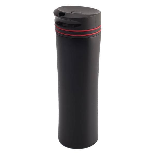 Szczelny kubek termiczny z dwiema ściankami ze stali nierdzewnej. Ścianka wewnętrzna wykonana z stali 18/8. Rozkręcana pokrywka umożliwiająca jej dokładne umycie. Szczelne zamknięcie – leak proof zapobiega wyciekaniu płynów. Próżnia między ściankami kubka zapewnia parametry termosu. Zamknięcie typu open/close. Utrzymuje ciepło do 14 godzin.