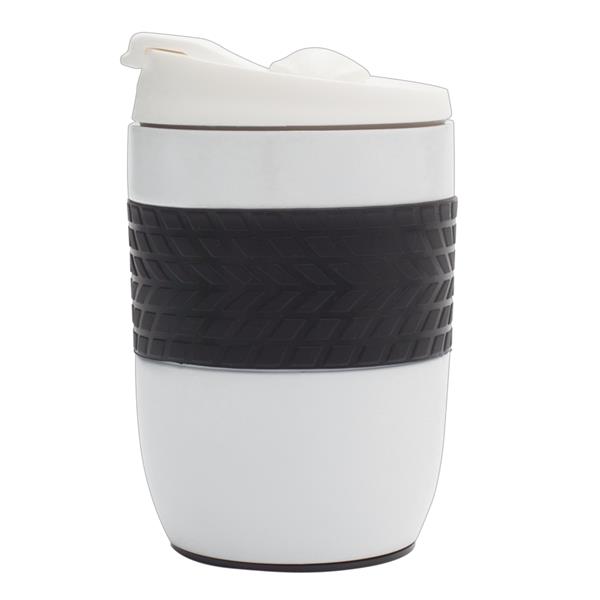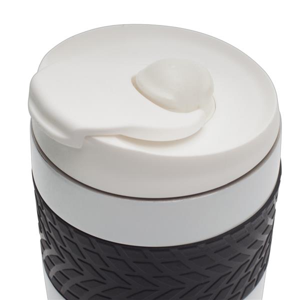 Szczelny kubek termiczny z ergonomiczną opaską ułatwiającą trzymanie kubka. Przyssawka umieszczona na spodzie zapobiega przypadkowemu przewróceniu się kubka. Oderwanie od podłoża przez podniesienie kubka pod kątem prostym do góry. Dwie ścianki ze stali nierdzewnej, wewnątrz stal 18/8 o podwyższonej jakości. Utrzymuje temperaturę powyżej 40°C przez 2 godziny. Posiada zamknięcie typu flip up sip i leak proof – zapobiegające wyciekaniu płynów. Pojemność 200 ml.