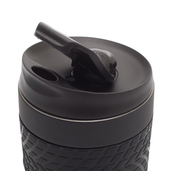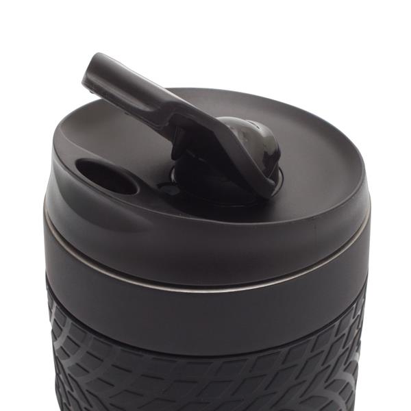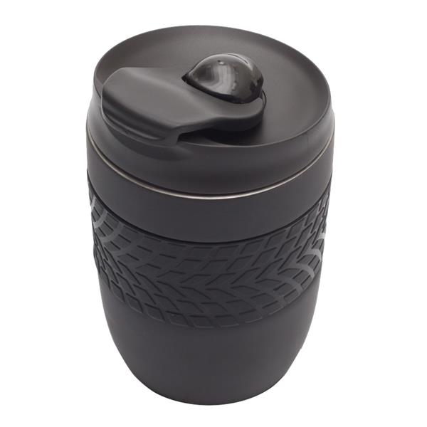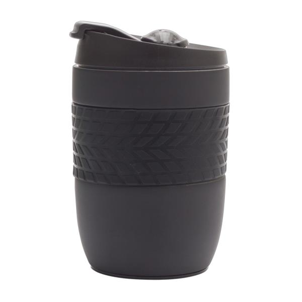 Szczelny kubek termiczny z ergonomiczną opaską ułatwiającą trzymanie kubka. Przyssawka umieszczona na spodzie zapobiega przypadkowemu przewróceniu się kubka. Oderwanie od podłoża przez podniesienie kubka pod kątem prostym do góry. Dwie ścianki ze stali nierdzewnej, wewnątrz stal 18/8 o podwyższonej jakości. Utrzymuje temperaturę powyżej 40°C przez 2 godziny. Posiada zamknięcie typu flip up sip i leak proof – zapobiegające wyciekaniu płynów. Pojemność 200 ml.