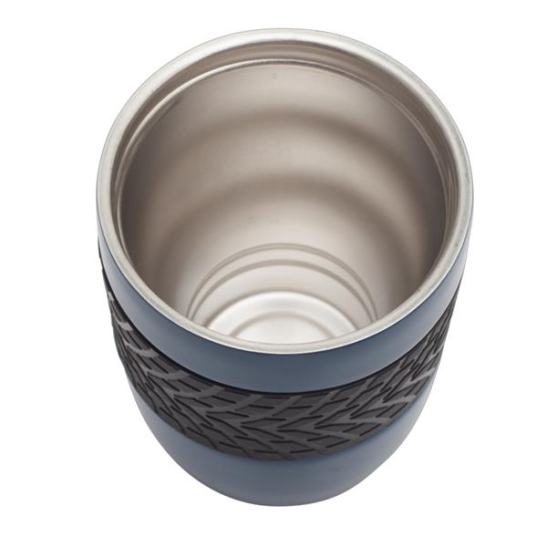 Szczelny kubek termiczny z ergonomiczną opaską ułatwiającą trzymanie kubka. Przyssawka umieszczona na spodzie zapobiega przypadkowemu przewróceniu się kubka. Oderwanie od podłoża przez podniesienie kubka pod kątem prostym do góry. Dwie ścianki ze stali nierdzewnej, wewnątrz stal 18/8 o podwyższonej jakości. Utrzymuje temperaturę powyżej 40°C przez 2 godziny. Posiada zamknięcie typu flip up sip i leak proof – zapobiegające wyciekaniu płynów. Pojemność 200 ml.