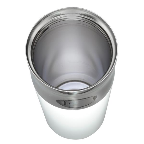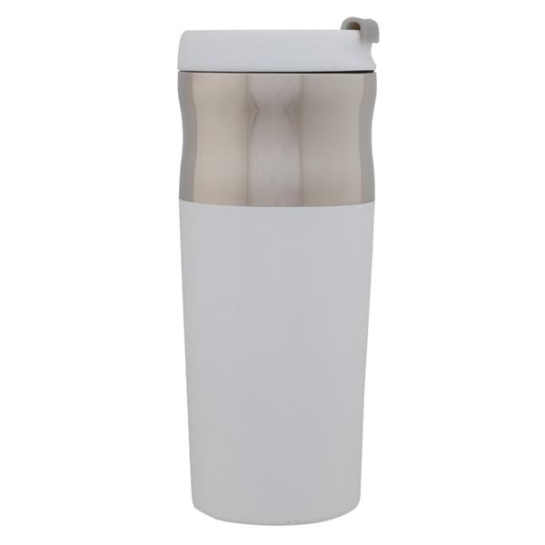 Szczelny kubek termiczny – termos o pojemności 450 ml. Szczelne zamknięcie – leak proof zapobiega wyciekaniu płynów. Zamknięcie typu flip up sip. Wewnętrzna ścianka kubka wykonana ze stali 18/8, próżnia między ściankami kubka zapewnia parametry termosu. Utrzymuje ciepło do 8 godzin.