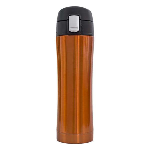 Kubek termiczny o pojemności 400 ml łączący najlepsze zalety termosu i kubka. Wygodny w użyciu, wyposażony w technologię unbolt&press – podwójne zabezpieczenie przed przypadkowym wylaniem napoju. Dwie ścianki ze stali nierdzewnej, wewnątrz stal nierdzewna 18/8 o podwyższonej jakości. Próżnia pomiędzy ściankami zapewnia bardzo dobre właściwości termoizolacyjne. Utrzymuje temperaturę powyżej 40°C przez 16 godzin. Podstawa kubka stalowa.