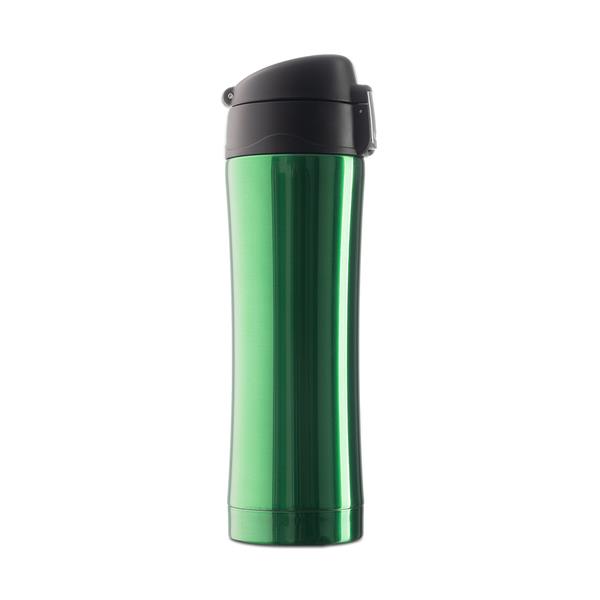 Kubek termiczny o pojemności 400 ml łączący najlepsze zalety termosu i kubka. Wygodny w użyciu, wyposażony w technologię unbolt&press – podwójne zabezpieczenie przed przypadkowym wylaniem napoju. Dwie ścianki ze stali nierdzewnej, wewnątrz stal nierdzewna 18/8 o podwyższonej jakości. Próżnia pomiędzy ściankami zapewnia bardzo dobre właściwości termoizolacyjne. Utrzymuje temperaturę powyżej 40°C przez 16 godzin. Podstawa kubka stalowa.
