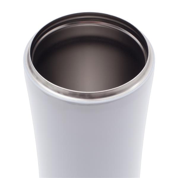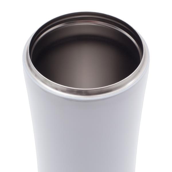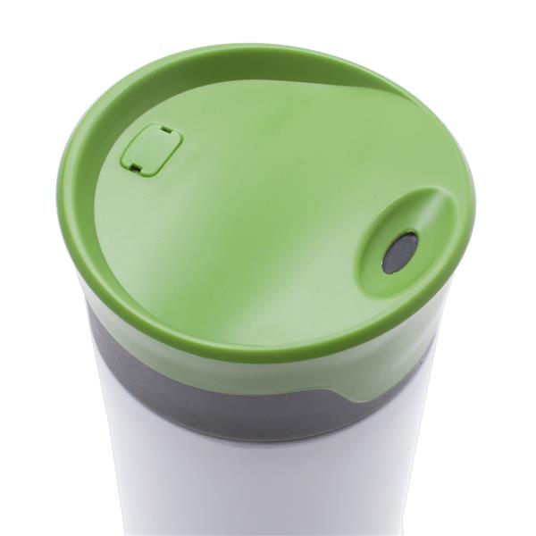 Szczelny termos – kubek termiczny o pojemności 430 ml. Dwie ścianki wykonane ze stali nierdzewnej, wewnętrzna ze stali o podwyższonej jakości 18/8 i próżni pomiędzy nimi. Zapewnia bardzo dobrą izolację cieplną płynu. Zamknięcie typu stop-go. Utrzymuje ciepło do 9 godzin.
