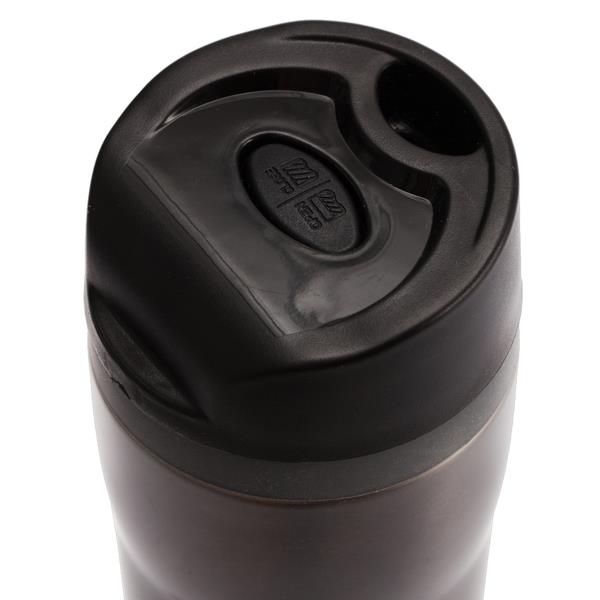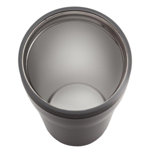 Szczelny kubek termiczny – termos o pojemności 350 ml. Dwie ścianki ze stali nierdzewnej, wewnątrz stal 18/8 o podwyższonej jakości. Rozkręcana pokrywka umożliwiająca jej dokładne umycie. Szczelne zamknięcie – leak proof zapobiega wyciekaniu płynów. Próżnia między ściankami kubka zapewnia parametry termosu. Zamknięcie typu open/close. Podstawa kubka z wodoodpornej gumy termoplastycznej TPR. Utrzymuje ciepło do 12 godzin. Możliwość dobrania dodatkowej opaski R00001.