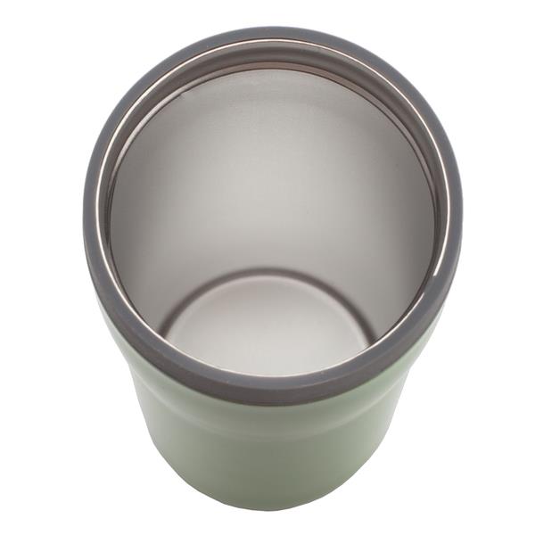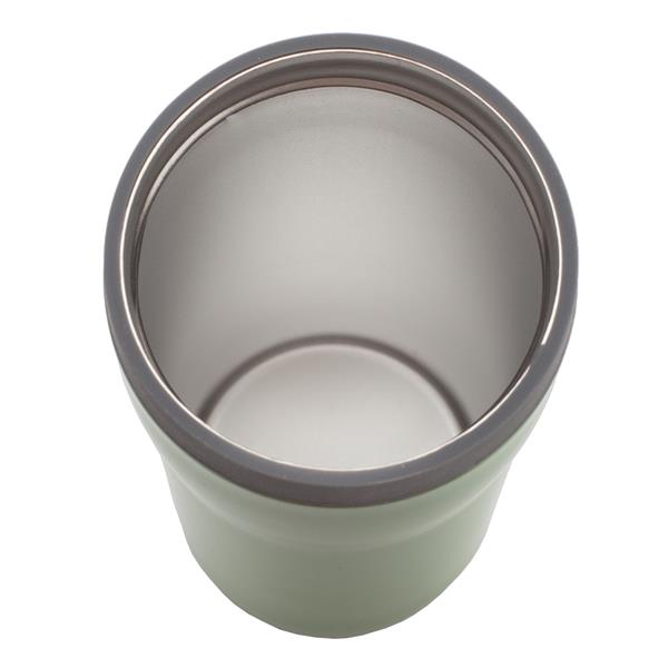 Szczelny kubek termiczny – termos o pojemności 350 ml. Dwie ścianki ze stali nierdzewnej, wewnątrz stal 18/8 o podwyższonej jakości. Rozkręcana pokrywka umożliwiająca jej dokładne umycie. Szczelne zamknięcie – leak proof zapobiega wyciekaniu płynów. Próżnia między ściankami kubka zapewnia parametry termosu. Zamknięcie typu open/close. Podstawa kubka z wodoodpornej gumy termoplastycznej TPR. Utrzymuje ciepło do 12 godzin. Możliwość dobrania dodatkowej opaski R00001.