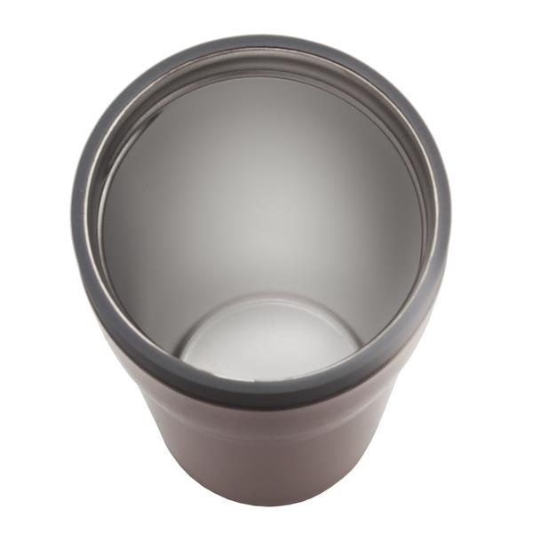 Szczelny kubek termiczny – termos o pojemności 350 ml. Dwie ścianki ze stali nierdzewnej, wewnątrz stal 18/8 o podwyższonej jakości. Rozkręcana pokrywka umożliwiająca jej dokładne umycie. Szczelne zamknięcie – leak proof zapobiega wyciekaniu płynów. Próżnia między ściankami kubka zapewnia parametry termosu. Zamknięcie typu open/close. Podstawa kubka z wodoodpornej gumy termoplastycznej TPR. Utrzymuje ciepło do 12 godzin. Możliwość dobrania dodatkowej opaski R00001.