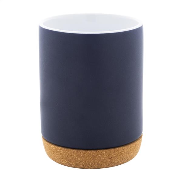 Kubek ceramiczny wysokiej jakości z podstawą z naturalnego korka. Z matowym wykończeniem na zewnątrz i błyszczącym wewnątrz. 280 ml. W pudełku z papieru kraft.