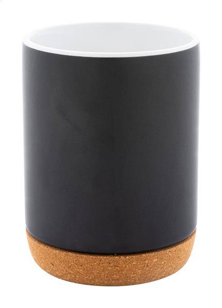 Kubek ceramiczny wysokiej jakości z podstawą z naturalnego korka. Z matowym wykończeniem na zewnątrz i błyszczącym wewnątrz. 280 ml. W pudełku z papieru kraft.