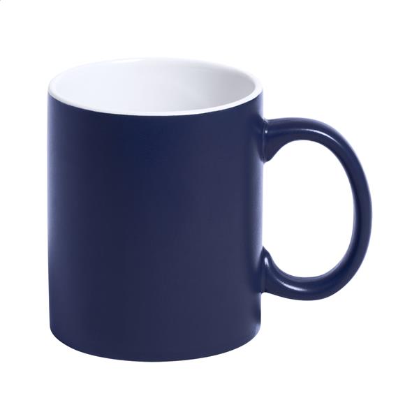 Kolorowy kubek ceramiczny z białym środkiem. Pokryty specjalną powłoką do grawerowania, wygrawerowane logo będzie miało ten sam kolor co środek. W pudełku. Poj. 350 ml.
