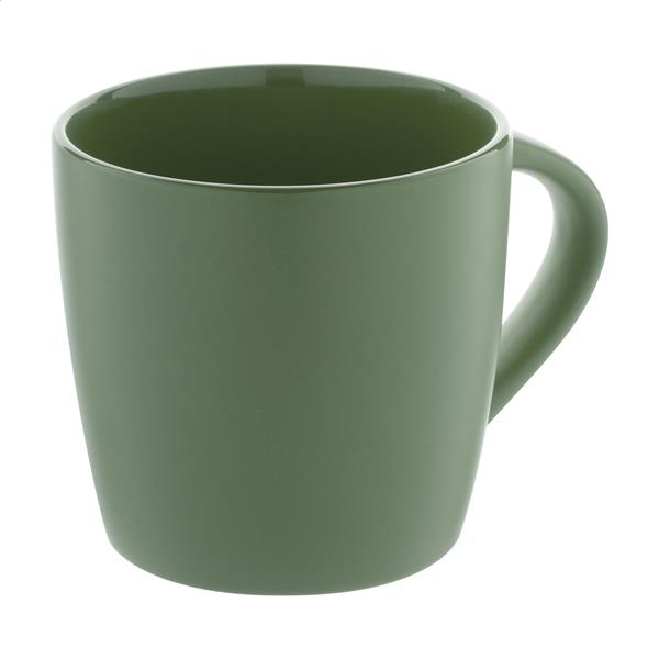 Wysokiej jakości kubek ceramiczny z matowym wykończeniem na zewnątrz i błyszczącym wnętrzem, pojemność 280 ml. W pudełku z papieru kraft.