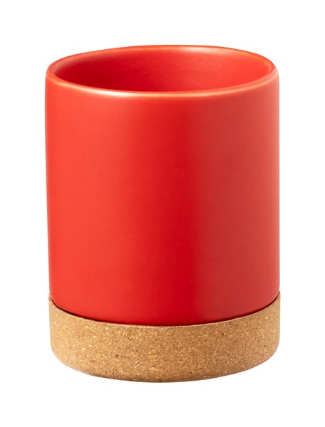 Kubek ceramiczny z podstawą z naturalnego korka, pojemność 350 ml. W pudełku z papieru kraft.