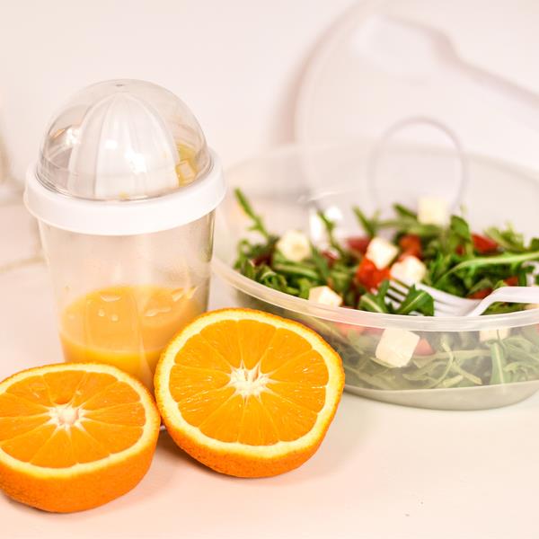 Plastikowy kubek 350ml z wyciskarką do soku. Bez kłopotu przygotujesz swój ulubiony sok owocowy.