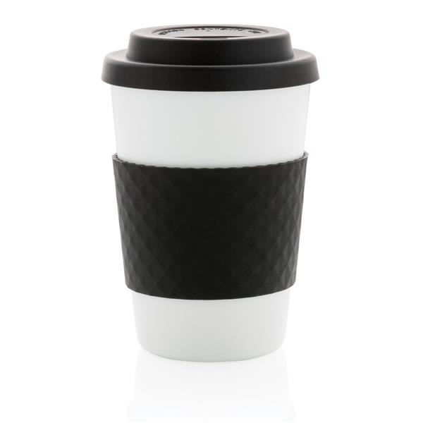 Kubek podróżny 270 ml, lekki, trwały i wielokrotnego użytku, wykonany z nadającego się w 100% do recyklingu materiału PP, silikonowe wieczko i uchwyt, odporny na temperaturę do 100 stopni Celsjusza, kubek można myć w zmywarce i używać w kuchence mikrofalowej, pasuje do większości ekspresów do kawy, ślad węglowy produktu: 0,39 kg CO2