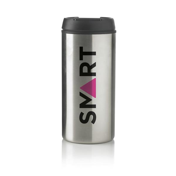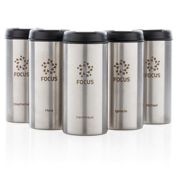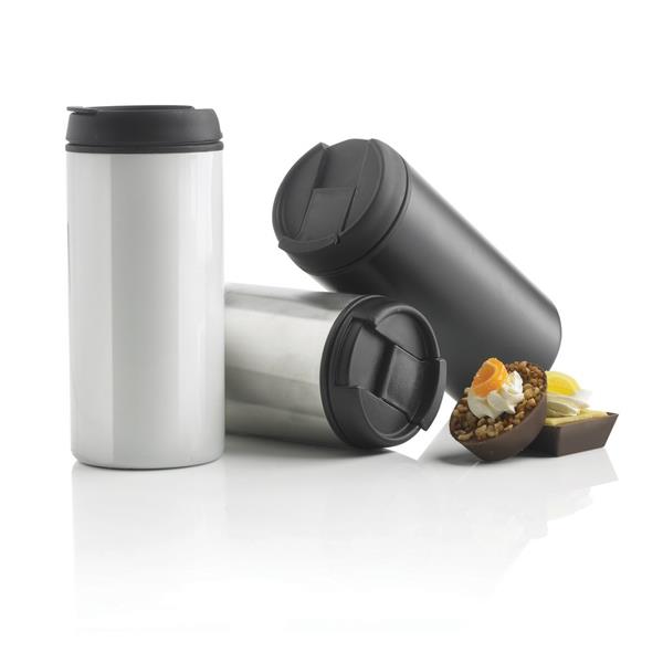 Kubek podróżny 300 ml, wykonany z materiałów pochodzących z recyklingu, całkowita zawartość materiałów z recyklingu obliczona na podstawie wagi całkowitej przedmiotu: 90%, w ozdobnym pudełku z papieru kraftowego, wzór zastrzeżony®, utrzymuje temperaturę napojów gorących do 4 godzin