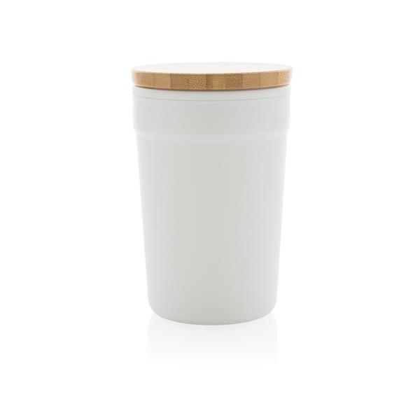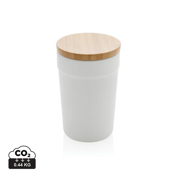 Kubek podróżny 300 ml, bambusowe wieczko, wykonany z PP z recyklingu z certyfikatem GRS, całkowita zawartość materiałów z recyklingu obliczona na podstawie wagi całkowitej przedmiotu: 52%, w ozdobnym pudełku z papieru kraftowego