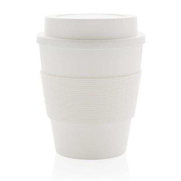 Kubek podróżny 350 ml, lekki, silikonowy uchwyt, zakręcane wieczko, kubek można myć w zmywarce i używać w kuchence mikrofalowej