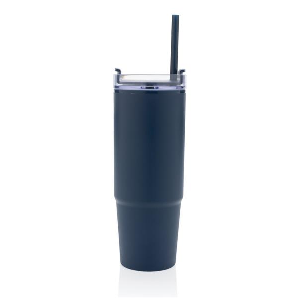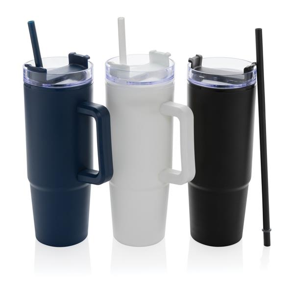 Kubek podróżny 900 ml, ergonomiczny uchwyt, obrotowe wieczko trzema pozycjami (dziubek do picia, otwór na słomkę, zamknięte), wykonany z materiałów z recyklingu, całkowita zawartość materiałów obliczona na podstawie wagi całkowitej przedmiotu: 80%, wyłącznie mycie ręczne, w pudełku z papieru kraftowego
