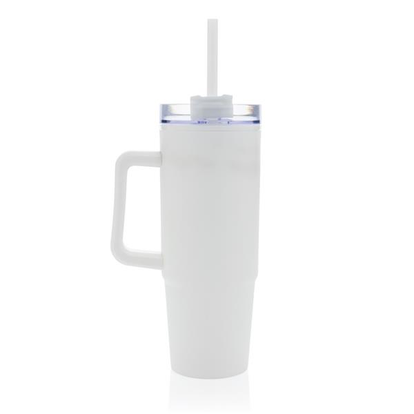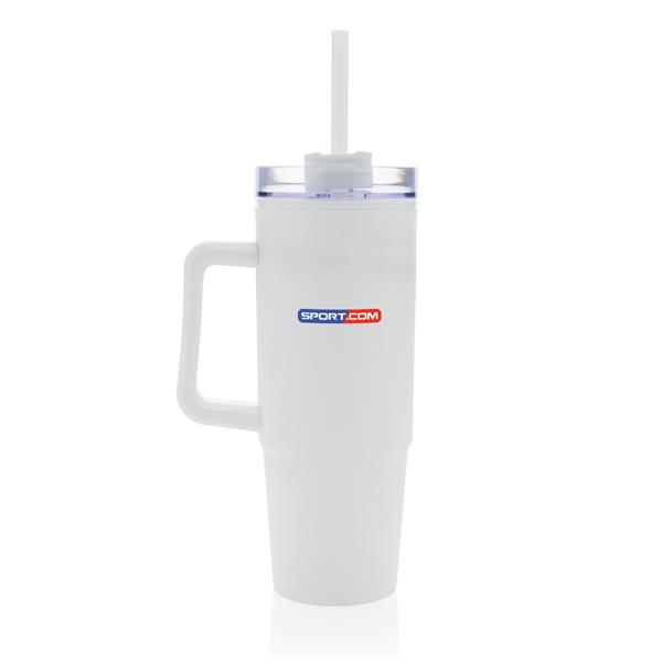 Kubek podróżny 900 ml, ergonomiczny uchwyt, obrotowe wieczko trzema pozycjami (dziubek do picia, otwór na słomkę, zamknięte), wykonany z materiałów z recyklingu, całkowita zawartość materiałów obliczona na podstawie wagi całkowitej przedmiotu: 80%, wyłącznie mycie ręczne, w pudełku z papieru kraftowego