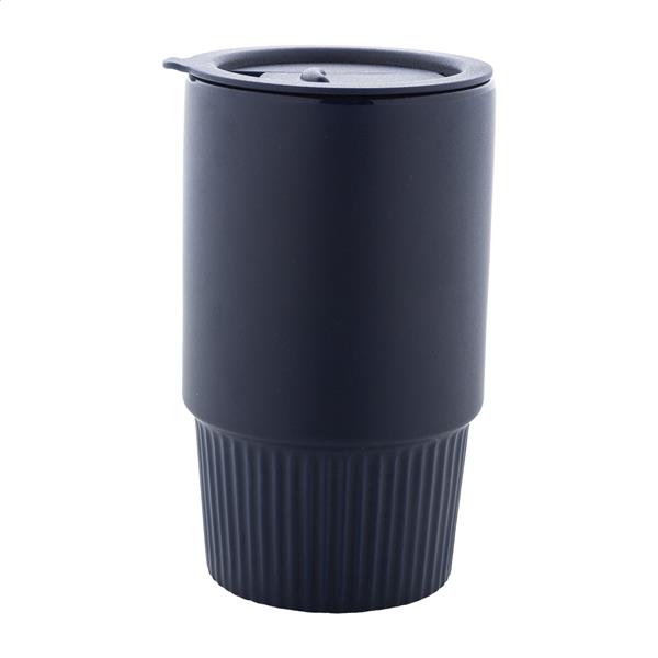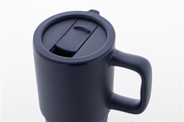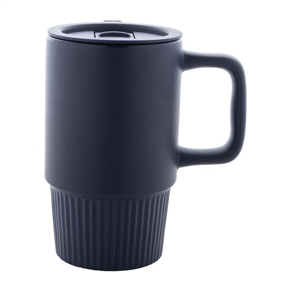 Wysokiej jakości ceramiczny kubek podróżny z matowym wykończeniem zewnętrznym i plastikową pokrywką PP. Pojemność 420 ml.