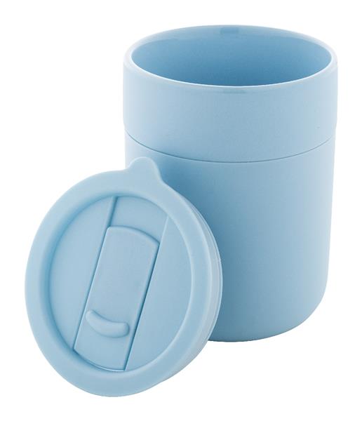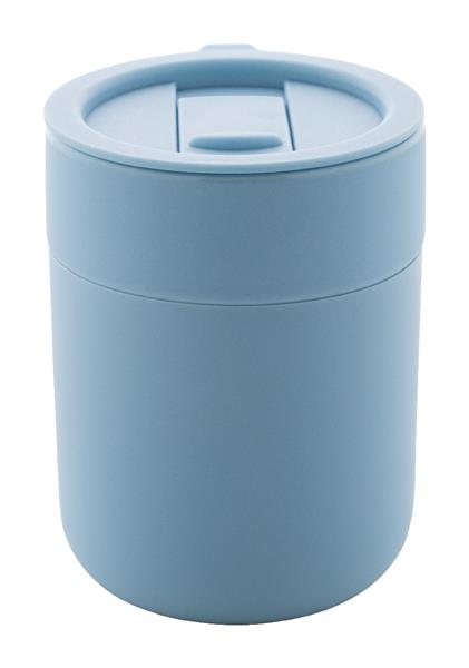 Ceramiczny kubek podróżny pokryty silikonem z pokrywką do picia z tworzywa sztucznego PP. 300ml. Description: Ceramiczny kubek podróżny pokryty silikonem z pokrywką do picia z tworzywa sztucznego PP. 300ml. Primary Color: jasno niebieski