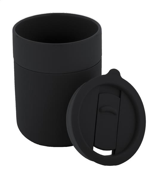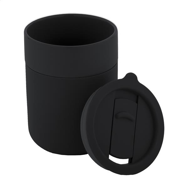 Ceramiczny kubek podróżny pokryty silikonem z pokrywką do picia z tworzywa sztucznego PP. 300ml.