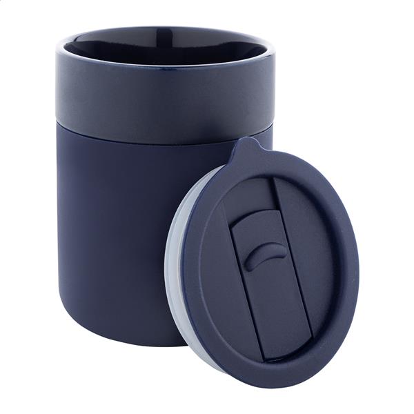 Ceramiczny kubek podróżny pokryty silikonem z pokrywką do picia z tworzywa sztucznego PP. 300ml.